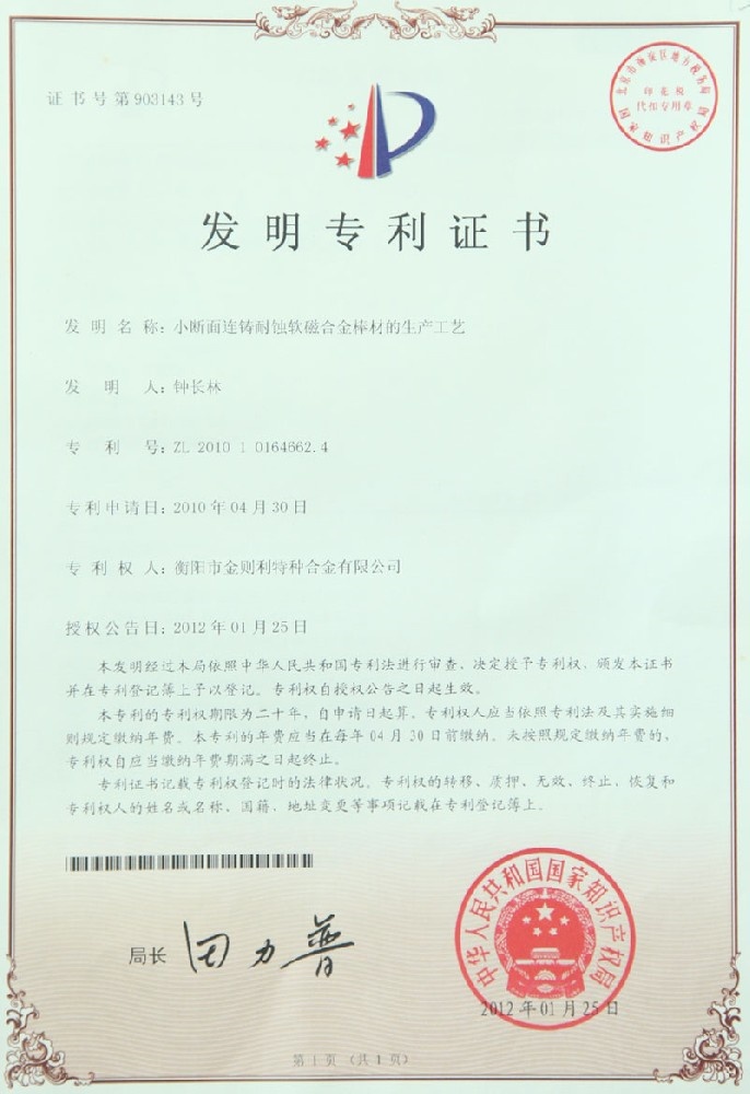 衡阳市金则利特种合金股份有限公司成立于一九九九年十二月,注册资本人民币两千两百万元。注册地址:衡阳市雁峰区白沙洲工业园长塘路2号。公司主营耐蚀软磁合金,为湖南省高新技术企业。公司自成立以来,即致力于耐蚀软磁合金的研发。 研制出的JL-31(00Cr13si2Pb)、JL-31B(00Cr13si2)、JL-31BS(00Cr13Si2S)、JL-37B(0Cr17Si2)、JL-37(0Cr17···